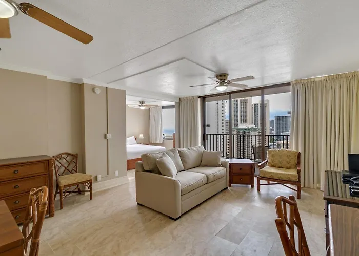 Situated nearly 5 minutes' walk from Saint Augustine by-the-Sea Catholic Church, the 1-room Tower 1 Suite 2214 - Kp Condo entices guests with a Jacuzzi and a sauna. The apartment is within walking distance of Yoga Floats, plus you can find Honolulu Zoo located in the area.
